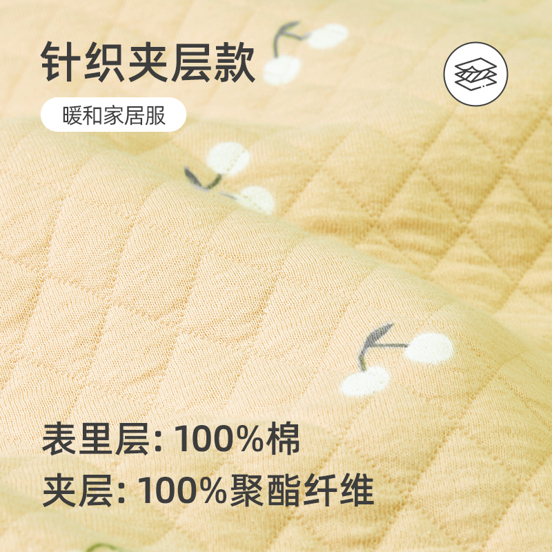 达尔丽新款 翻领睡衣女秋冬纯棉夹层三层空气棉加厚女士家居服套装
