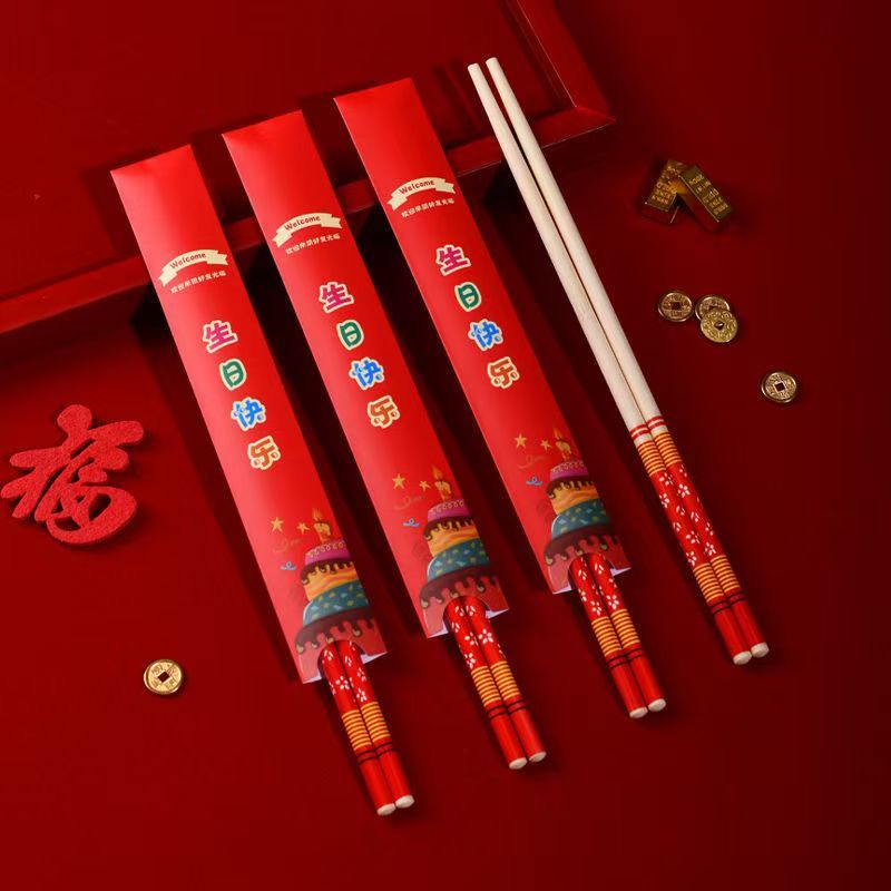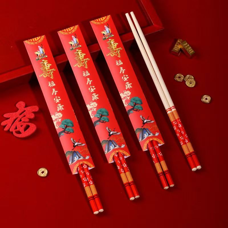 喜庆纸套一次性竹筷子独立装 高档加长加粗筷结婚乔迁寿宴生日宴席