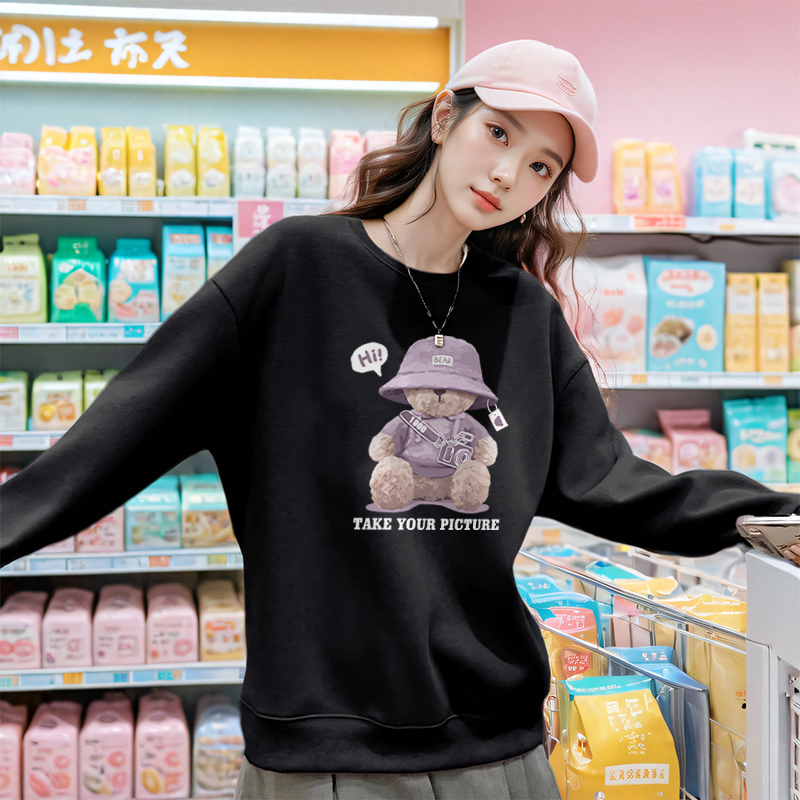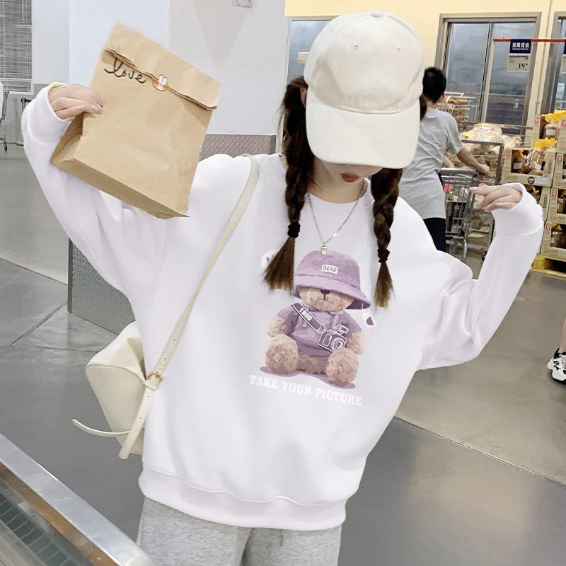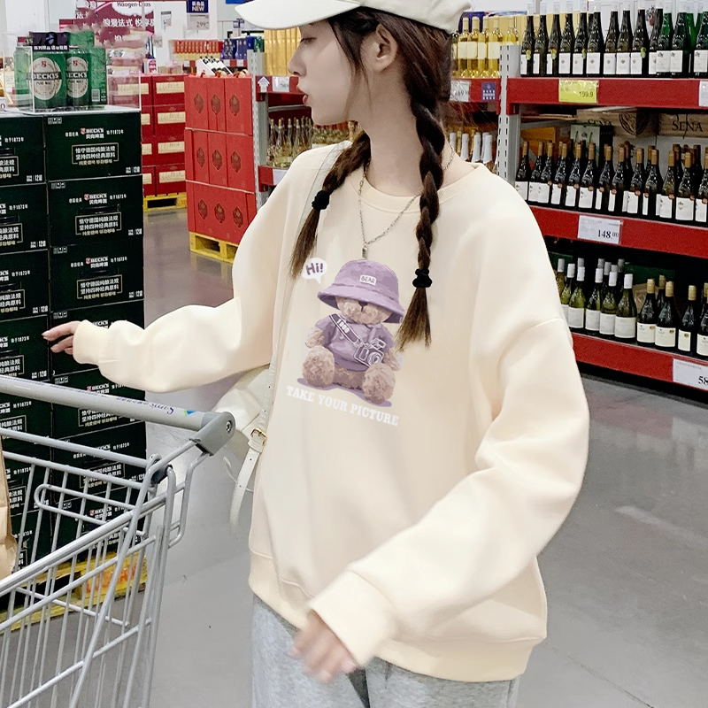圆领美式 KWV真维斯紫色卫衣女2024新款 薄款 春秋款 上衣外套女 爆款