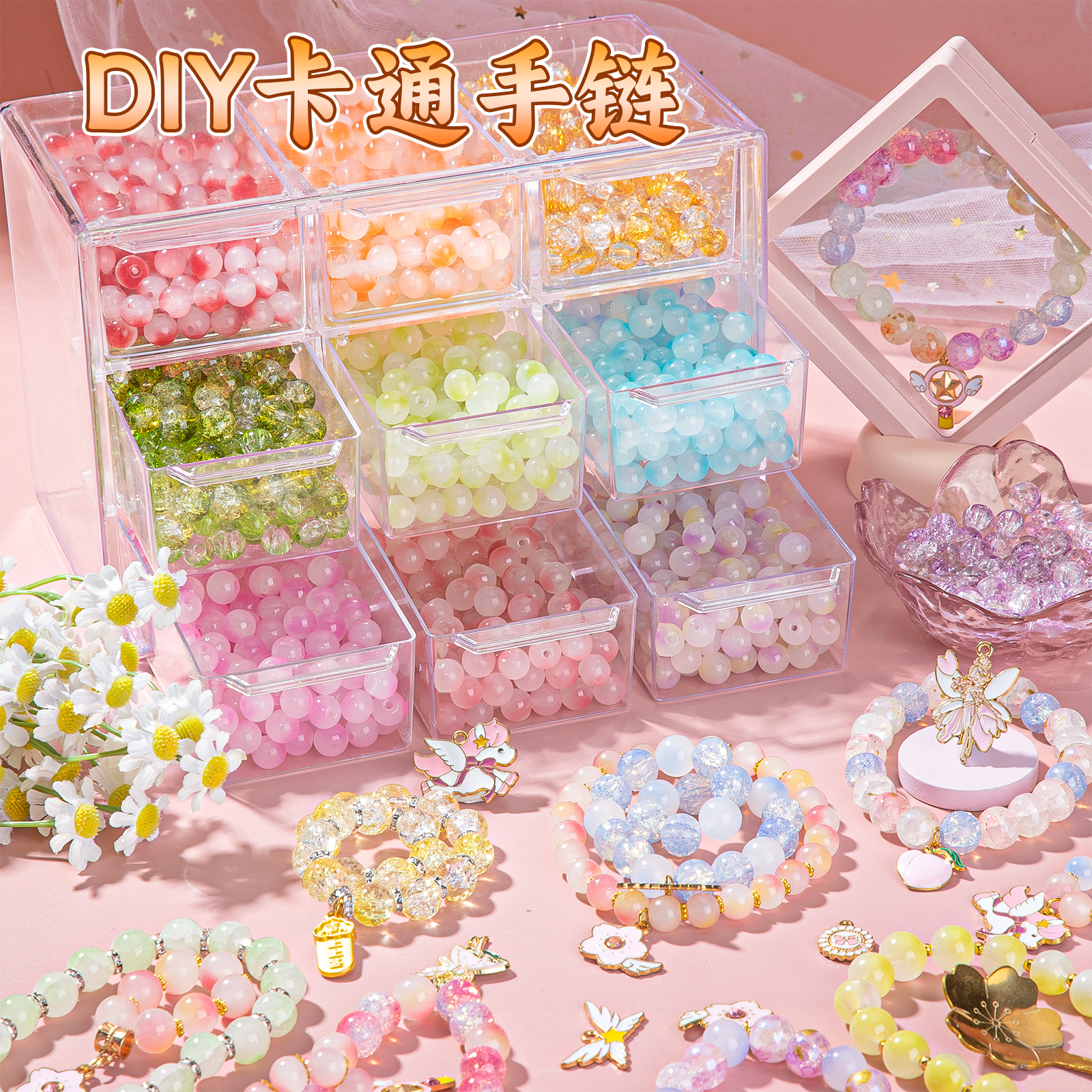串珠手工diy材料包儿童手链女孩玩具女童珠琉璃公主首饰女儿喜欢