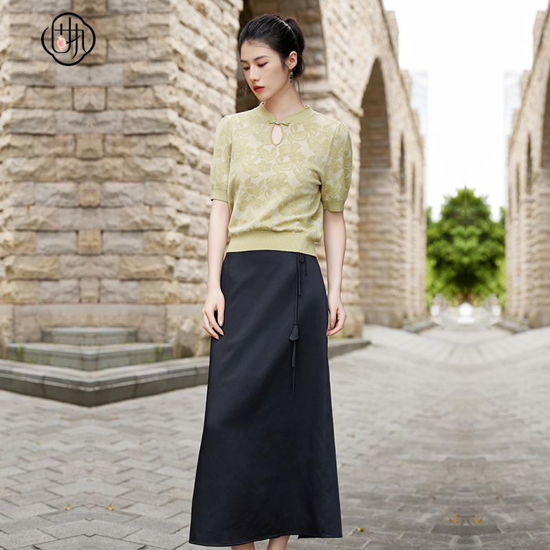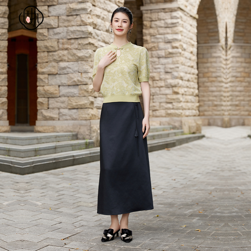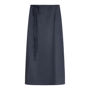 高腰吊坠绑带纯色醋酸A字长款 法式 开衩半身裙 新款 固执秋季