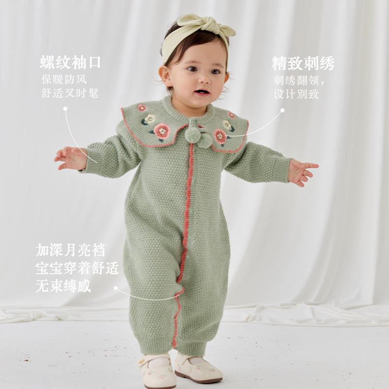 云谷花廊modomoma婴儿针织连体衣衣服花边翻领北极绒棉线毛衣爬服