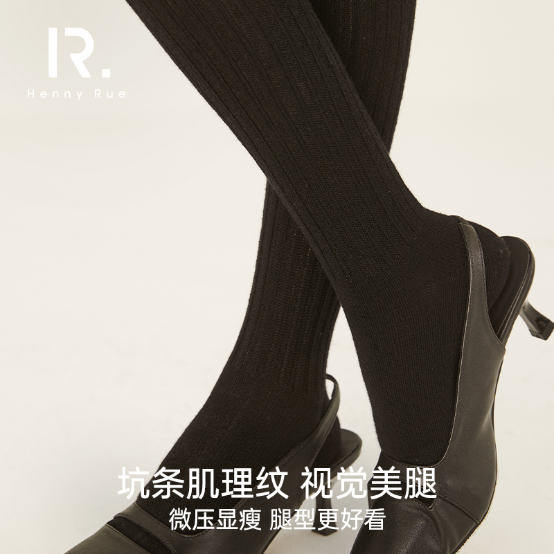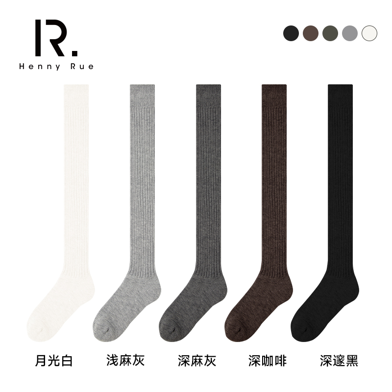 HENNY RUE亨尼露日系女士秋冬坑条软糯含羊毛绒感小腿袜高筒袜