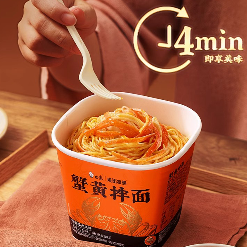 白象蟹黄拌面桶装 蟹黄酱干拌面方便面懒人夜宵速食杯面整箱批发