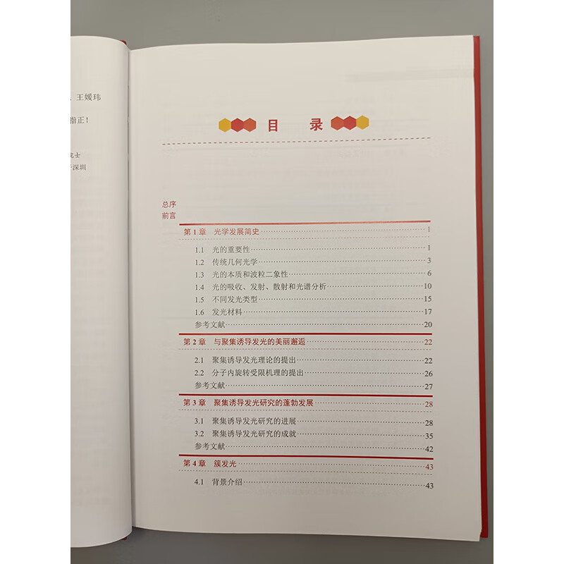 传统几何光学 光本质和波粒二象性 光吸收 聚集诱导发光物语 散射和光谱分析 光重要性 发射 不同发光类型发光材料 光学发展简史