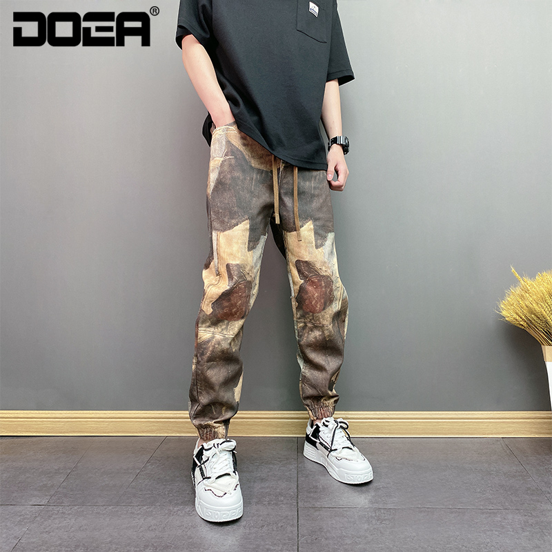潮流韩版 束脚休闲牛仔裤 个性 青年美式 设计感拼接男士 2025年春秋季