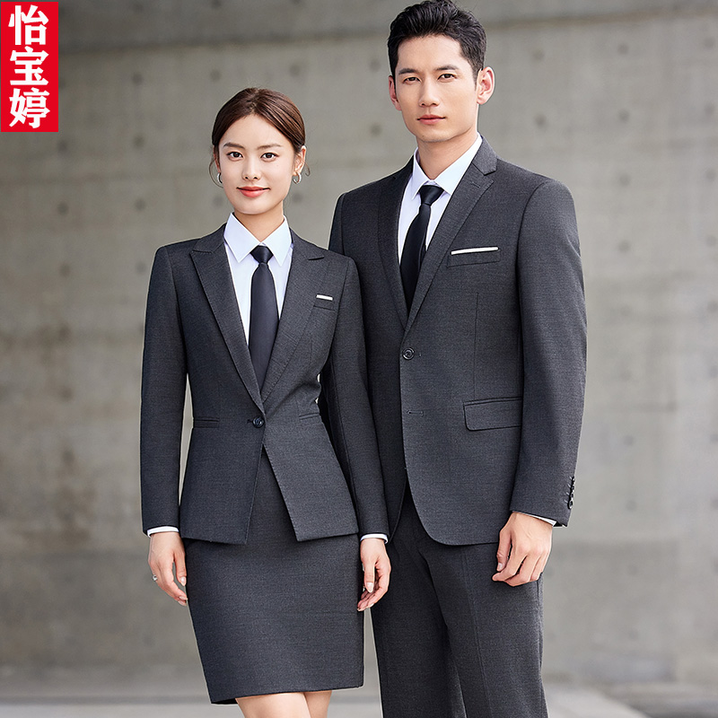 职业深灰色西服商务套装 售楼部工作服 公司企业行政经理气质工装