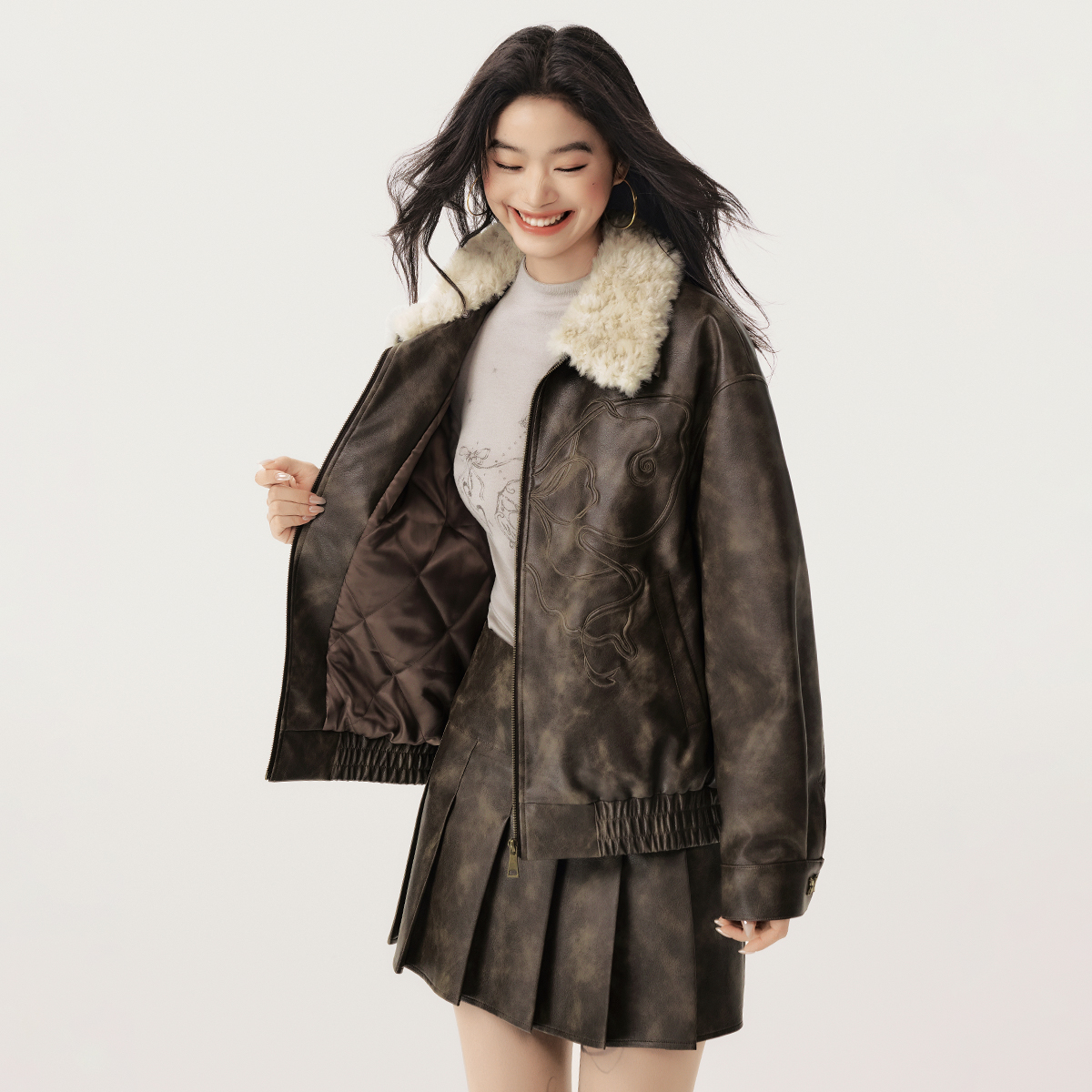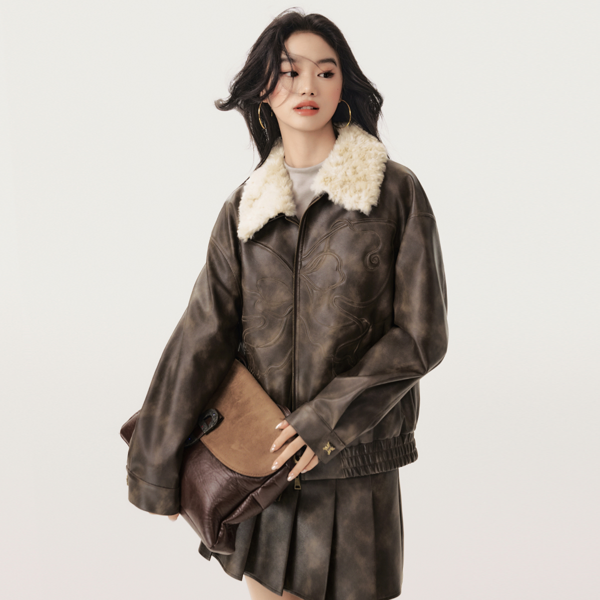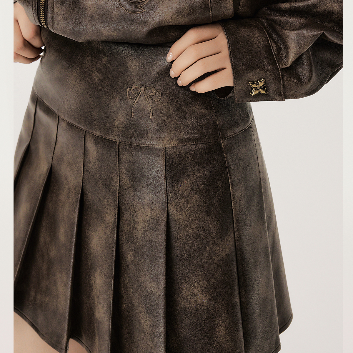 新款 女2025冬季 复古外套半身裙PU皮美拉德两件套 套装 EPTISON时尚