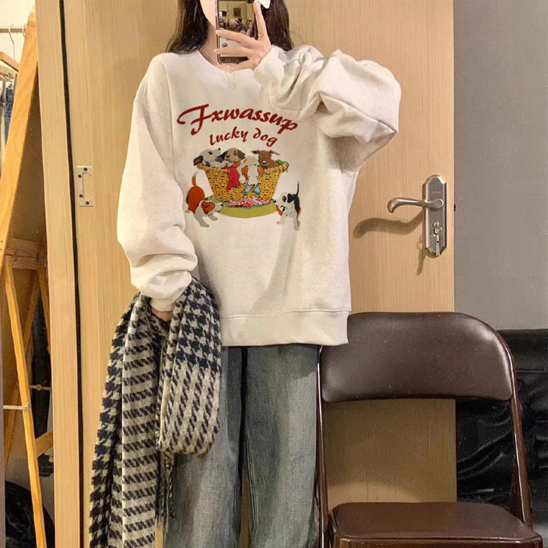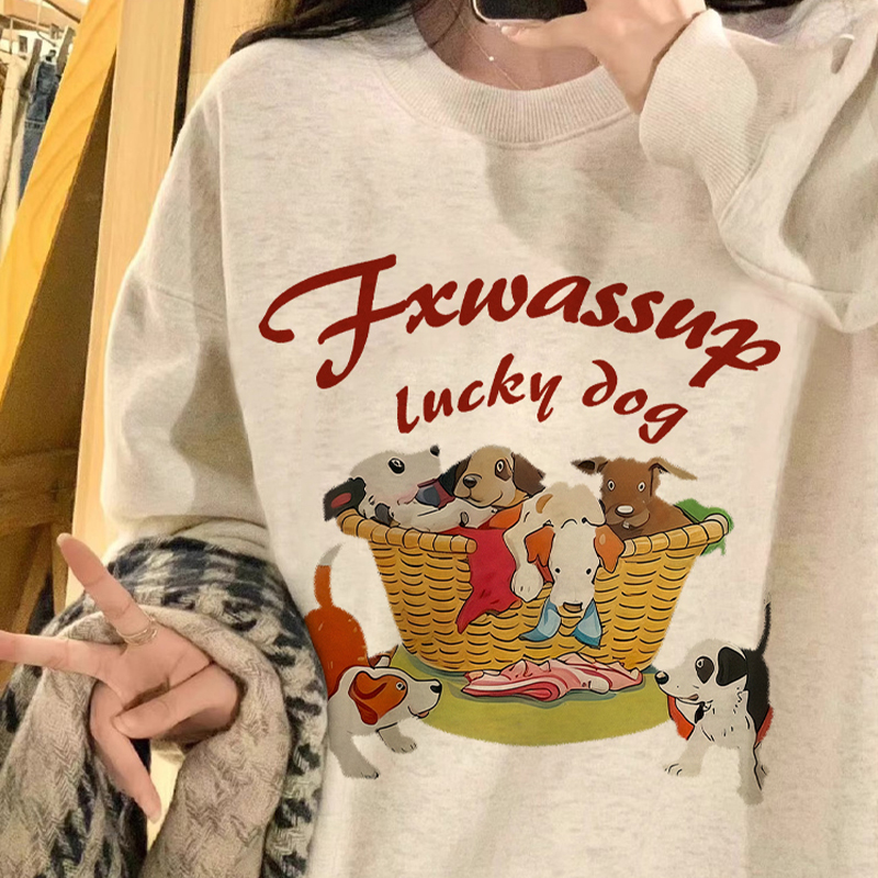 早秋冬季 时尚 爆款 潮牌长袖 外套上衣 美式 入秋白灰色卫衣女2024新款