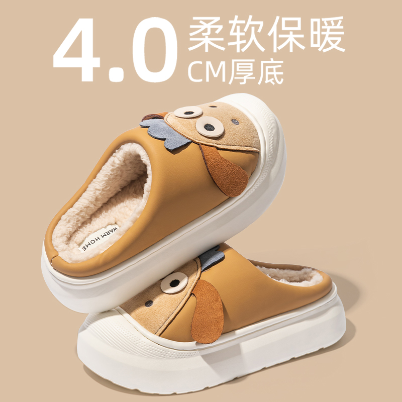 卡通棉拖鞋 室内家居包头保暖棉拖女外穿 女士秋冬防水厚底2025新款