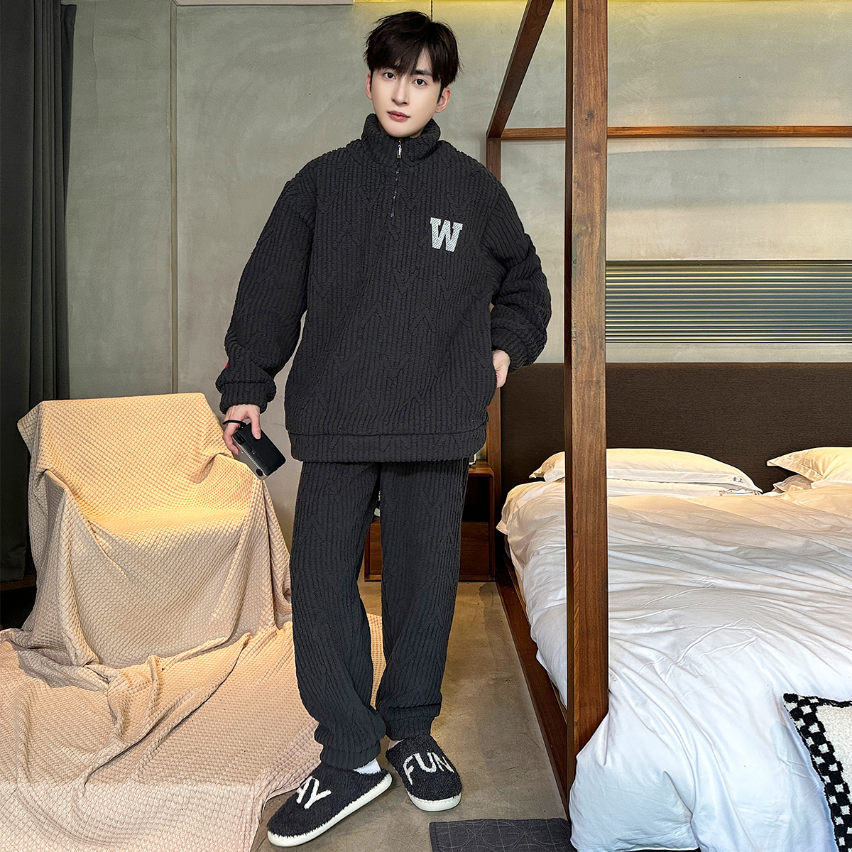 珊瑚绒加绒加厚保暖法兰绒大码 冬季 家居服男 秋冬款 乐姿梦睡衣男士