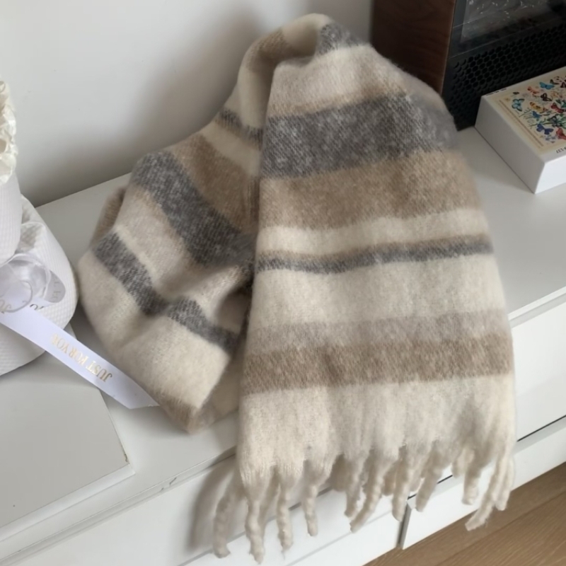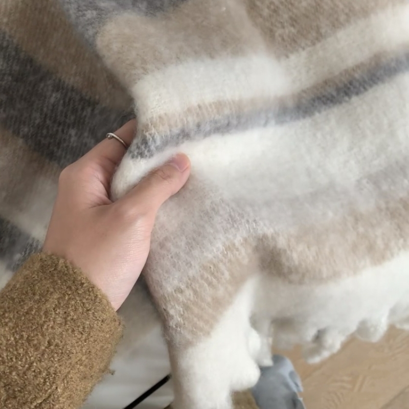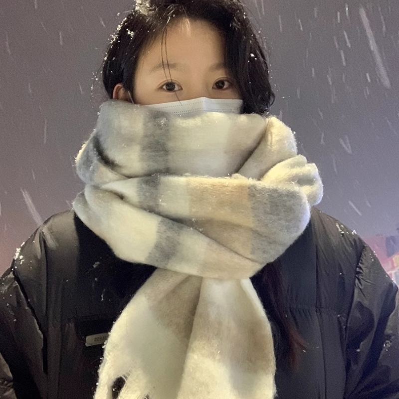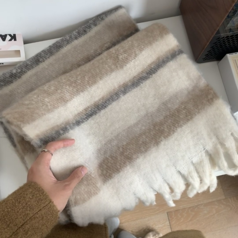2025新款 美拉德渐变加厚保暖围脖氛围感百搭毛绒冬天 围巾女秋冬季