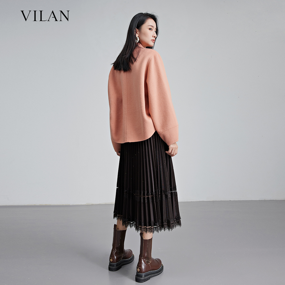 中长款 新款 裙子 慧兰包芯纱半身裙女高腰A字百褶裙秋季 vilan