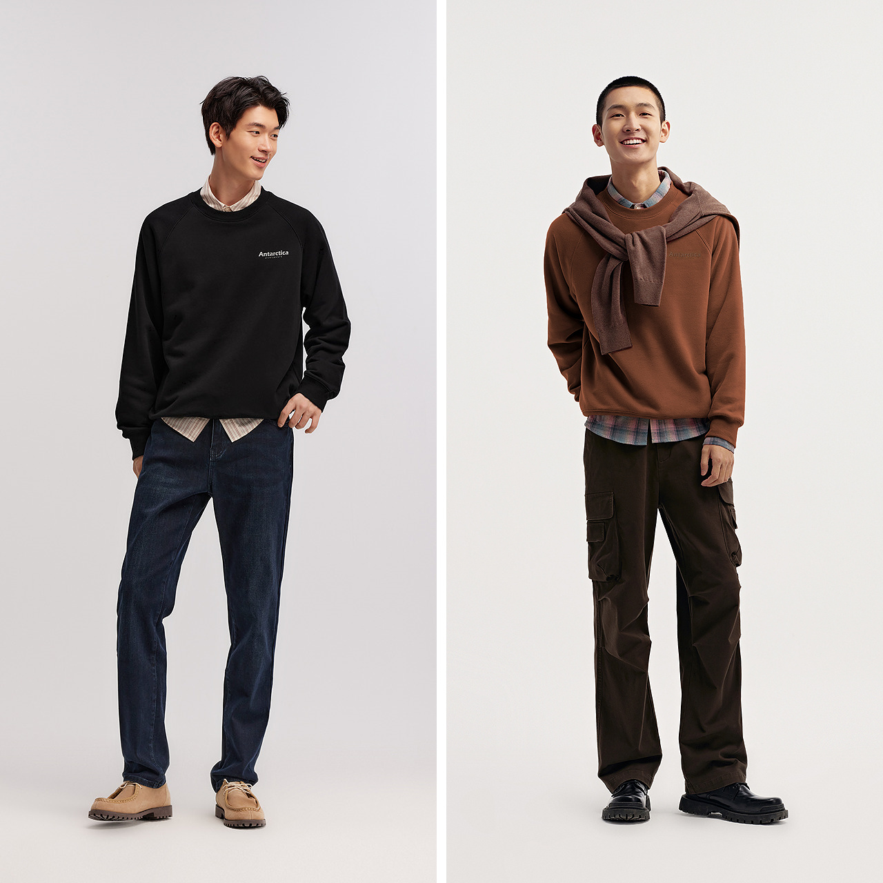 豆绿色外套男A 重磅三角领长袖 班尼路S&K系列圆领无帽卫衣男款 秋季