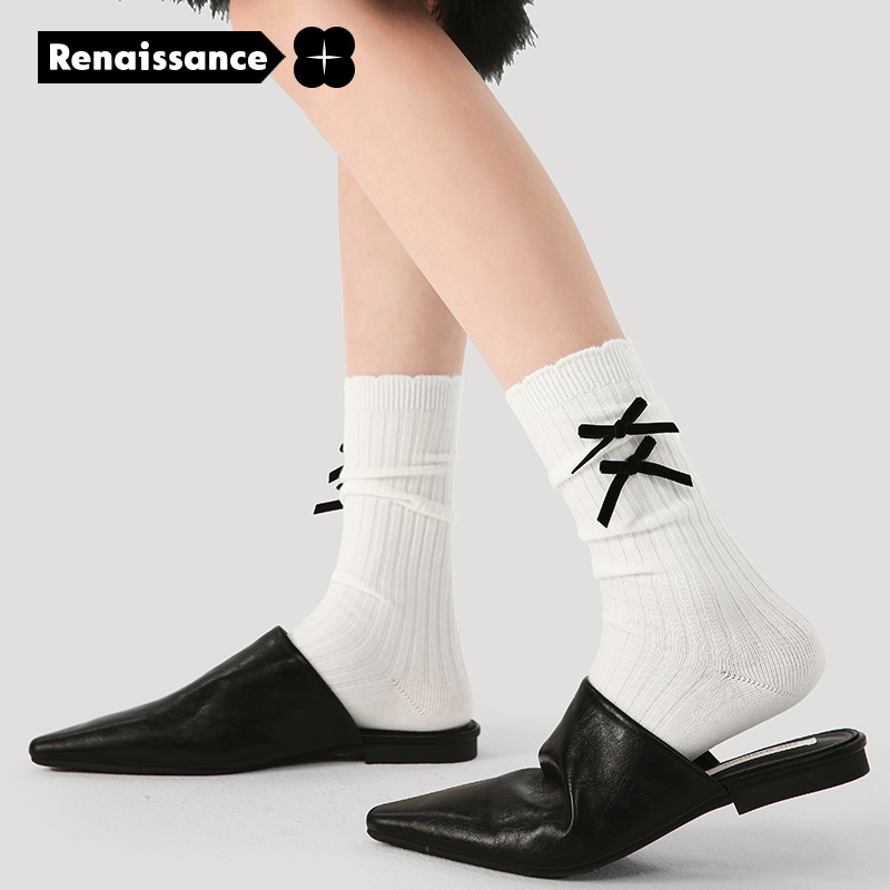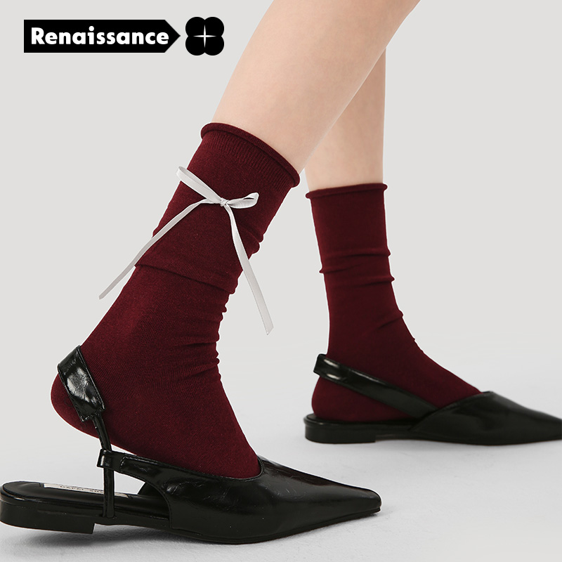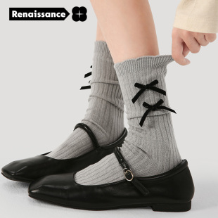 中筒袜 蝴蝶结miu系风袜子女棉袜芭蕾风秋季 R文艺复兴24新款 春秋款