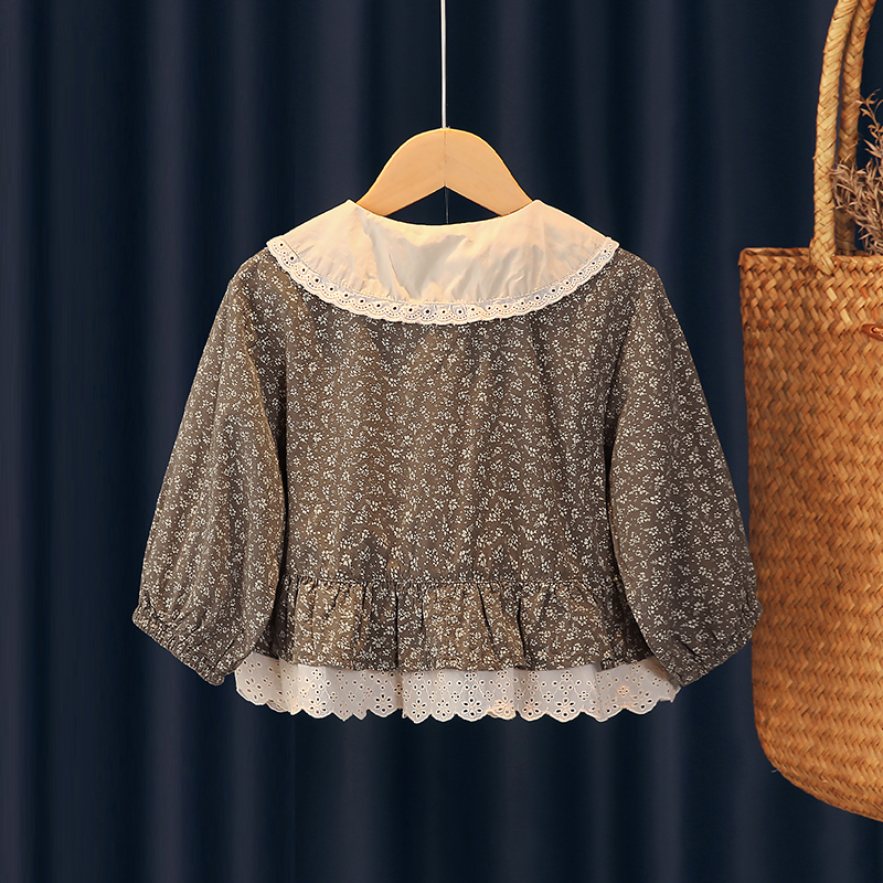 衬衣小女孩碎花娃娃衫 女童衬衫 上衣宝宝纯棉长袖 法式 春秋2025新款