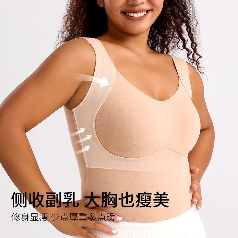 大码 微胖mm无痕发热秋衣打底内搭 保暖背心女带胸垫加绒内衣秋冬季