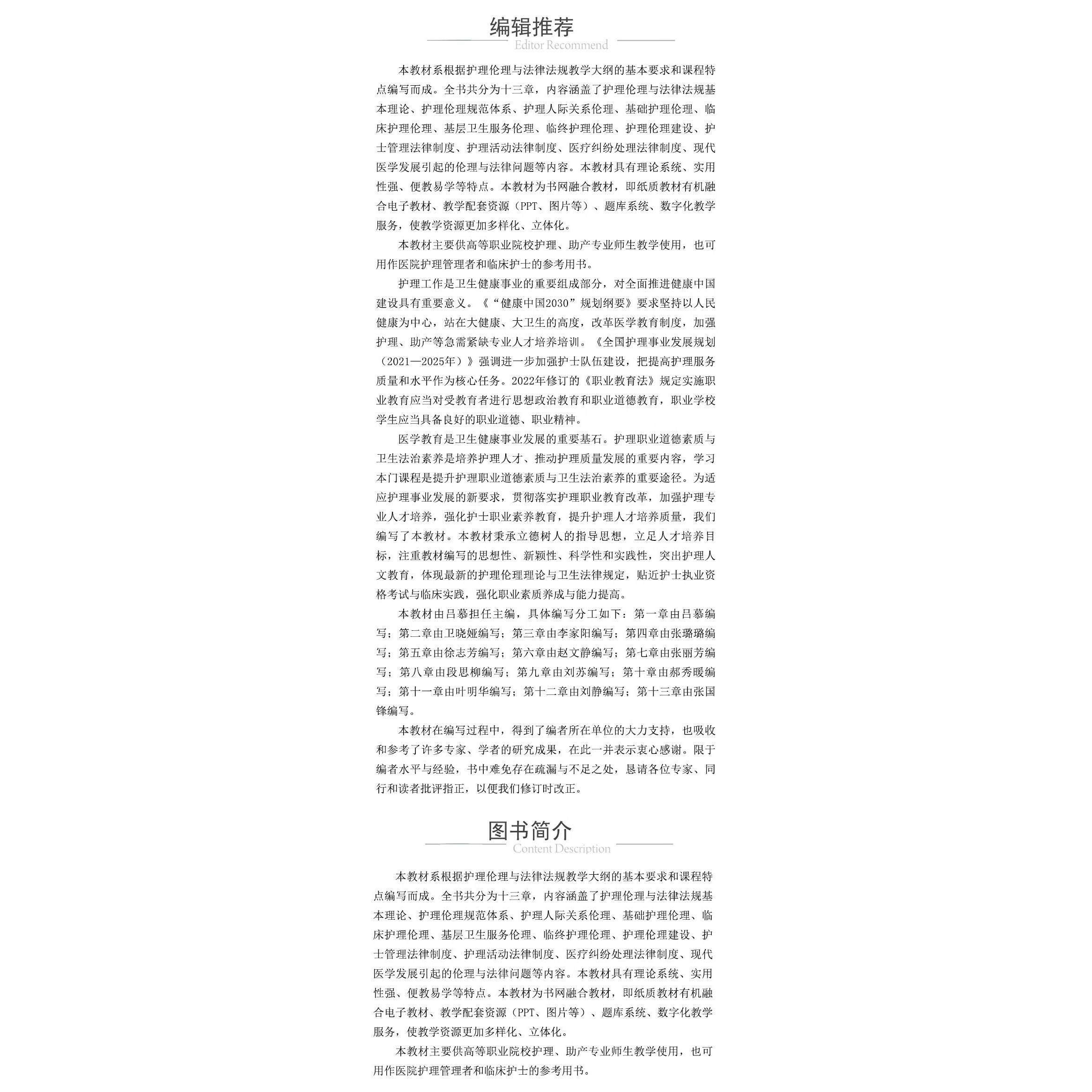 社 中国医药科技出版 高等卫生职业教育十四五创新教材 适用于护理 应用性法律教育课程 护理伦理与法律法规 助产专业 吕慕