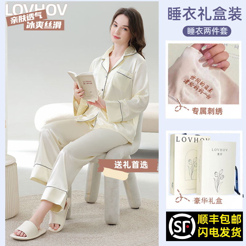 礼盒装 长裤 家居服可刺绣母亲节送妈妈老婆生日礼物 长袖 睡衣女夏季