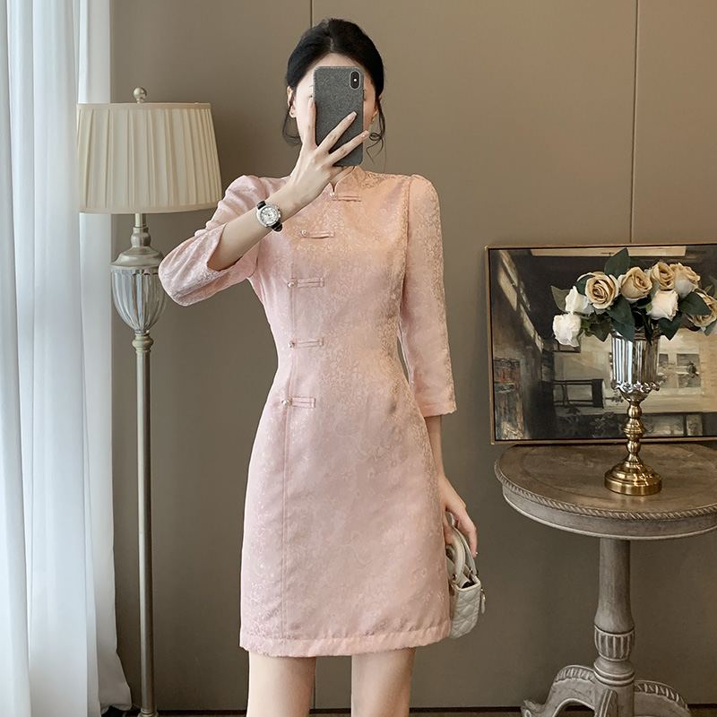 裙子 气质印花系带收腰显瘦七分袖 茗思今年流行连衣裙秋季 2025新款