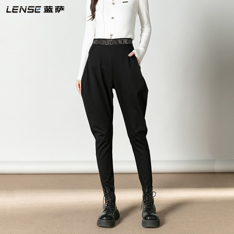 骑马裤 蓝萨2024春秋新款 小脚长裤 女高腰宽松大码 黑色香蕉哈伦裤