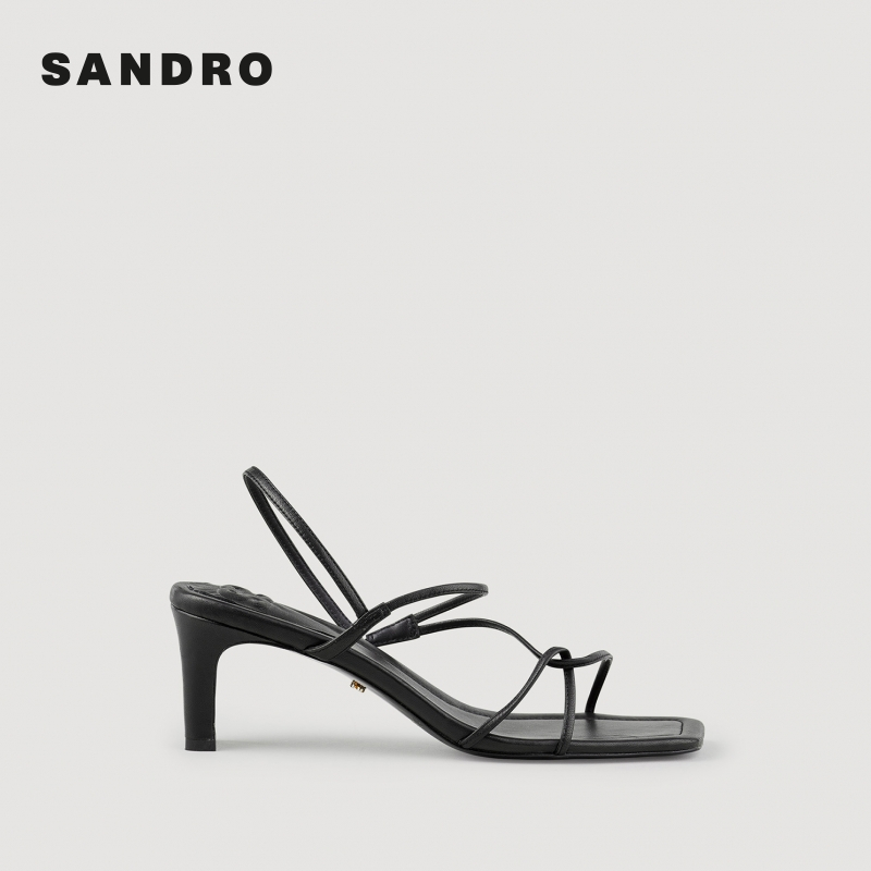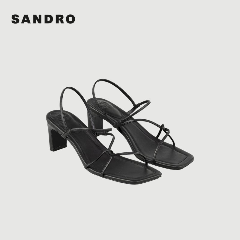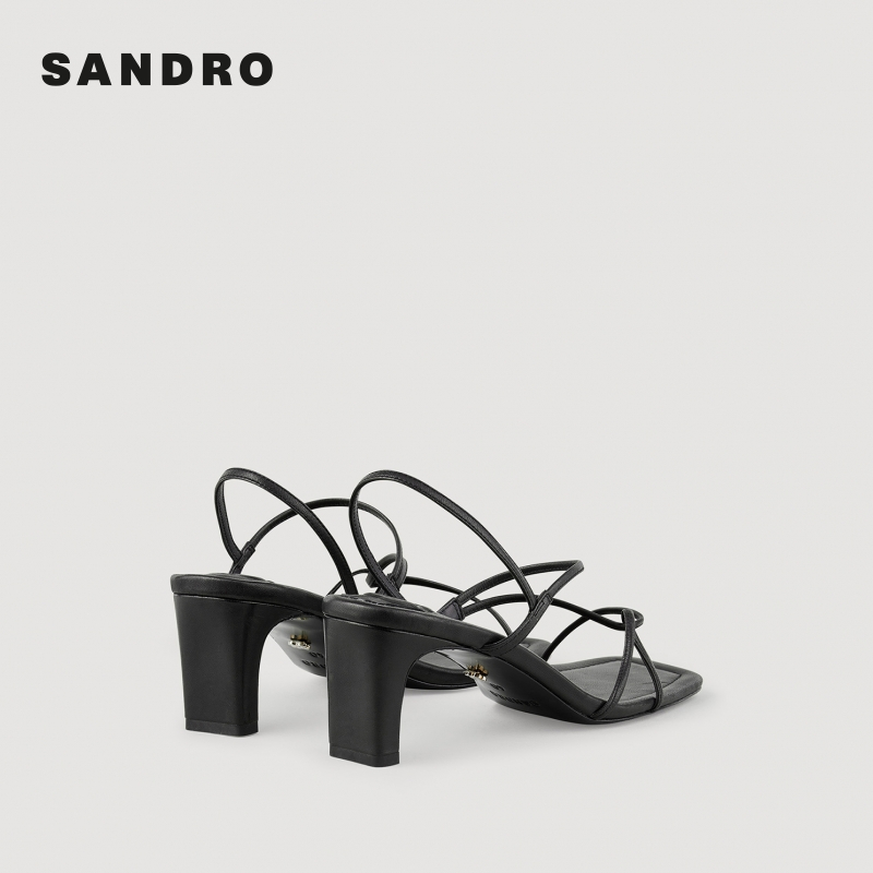 简约黑色细带羊皮革粗中跟凉鞋 SANDRO 法式 款 Outlets春夏女士经典