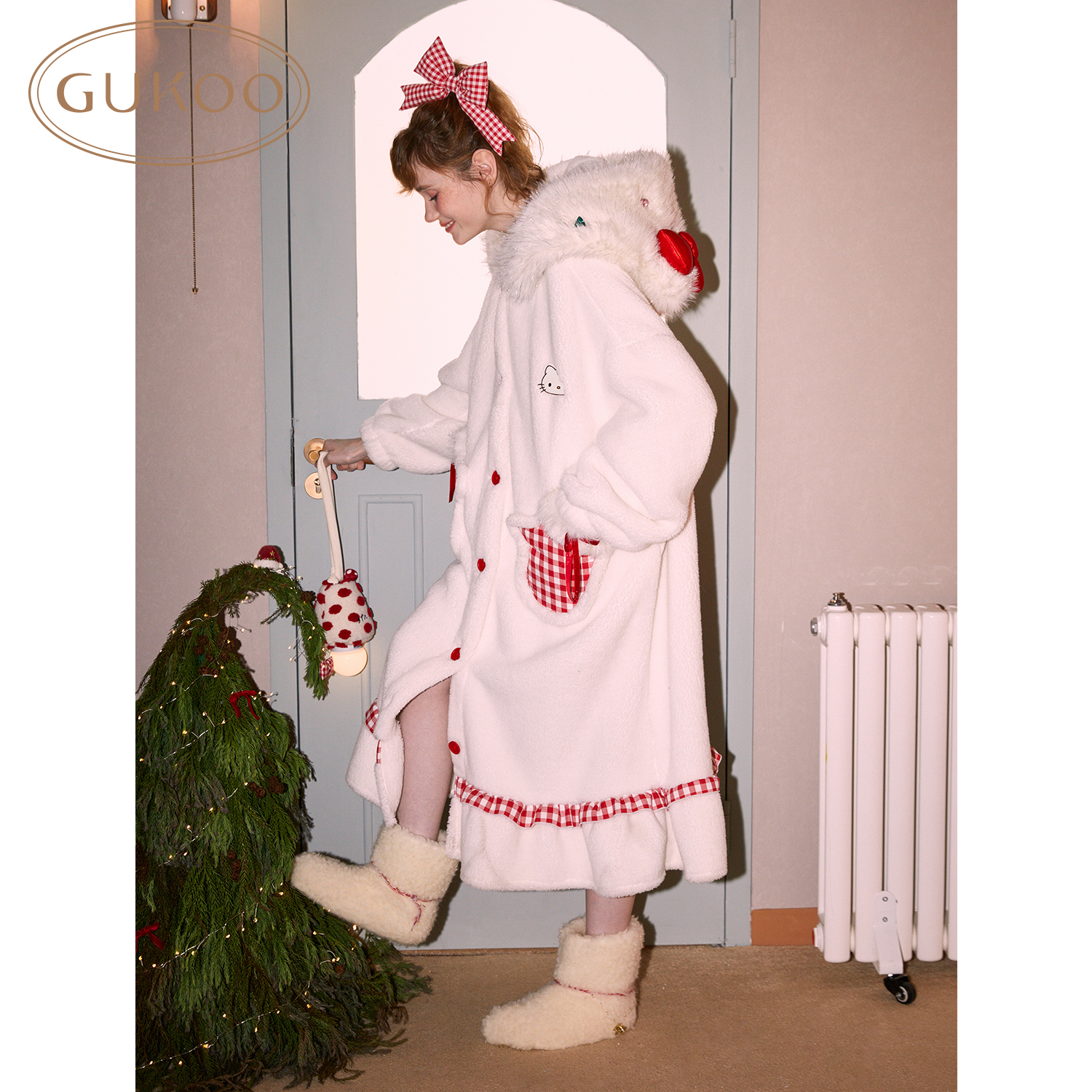 毛绒保暖女士家居服睡袍D HelloKitty联名新款 Gukoo 果壳睡袍冬季