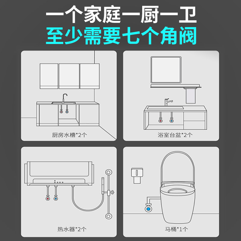 惠达加长角阀镀铬八字阀国标四分通用止水阀陶瓷阀芯冷热三角阀