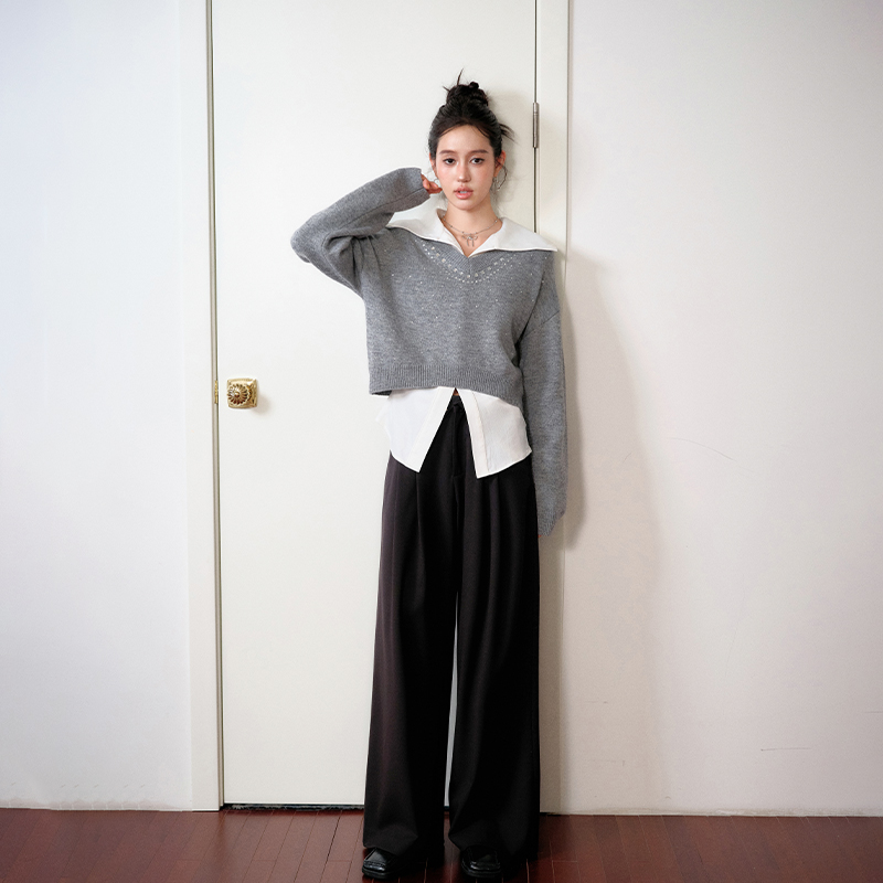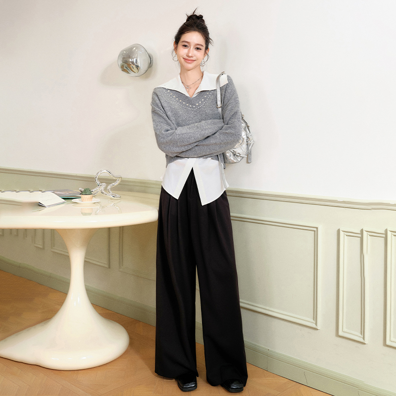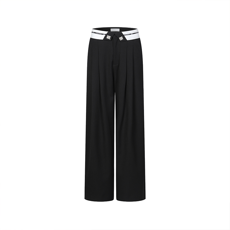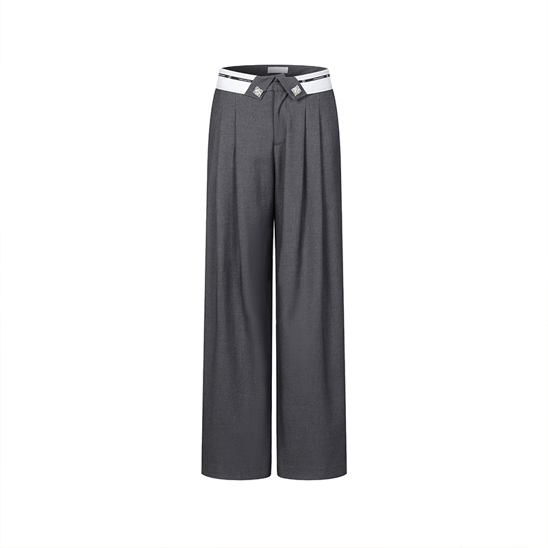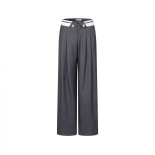 银泰百货 女士天丝羊毛翻腰头宽松直筒裤 301355 Quarters Three