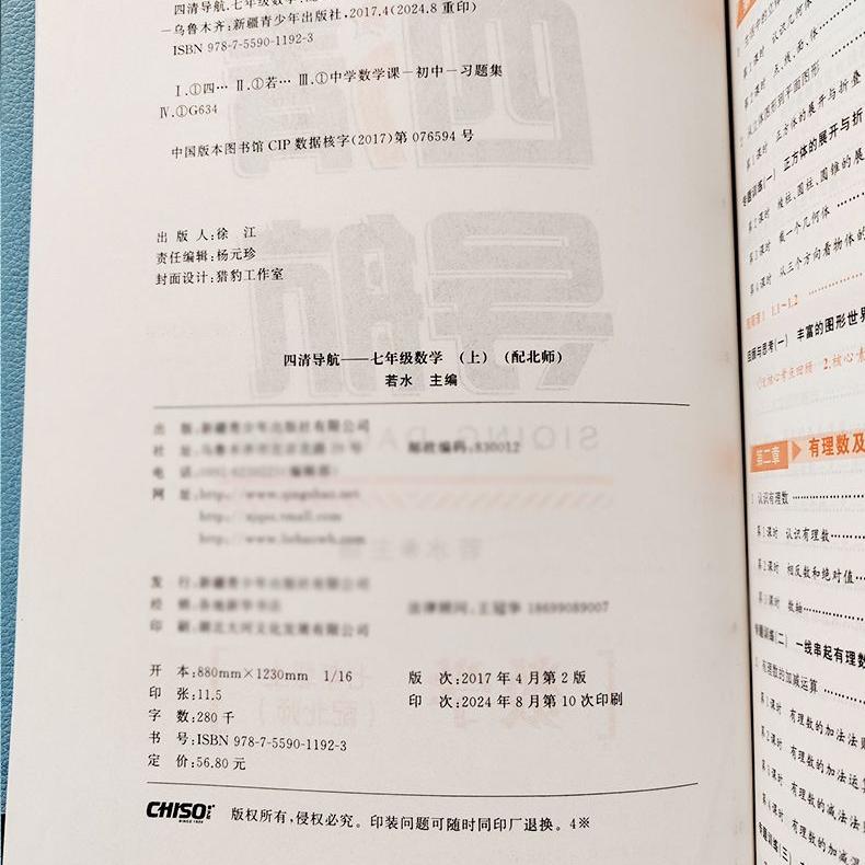 初中初一年级上册数学华师版 四清导航七年级上册数学北师版 7年级上册数学教材配套同步练习册 2025秋新版 7上BS附试卷答案解析