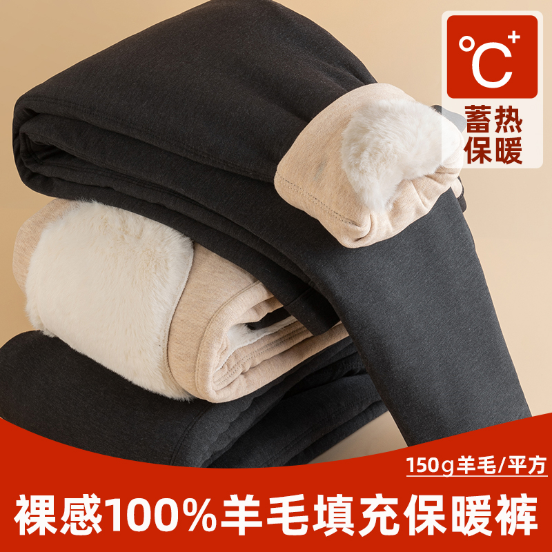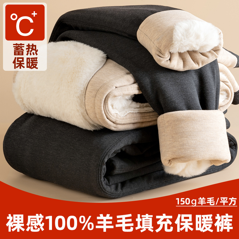 加绒裤 棉裤 中老年东北加厚纯羊毛裤 女士防寒打底裤 保暖裤 冬季 男款