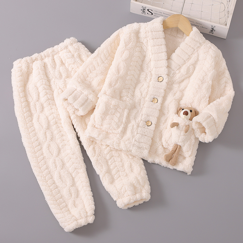 女孩宝宝家居服套装 儿童法兰绒秋冬季 睡衣男童女童珊瑚绒加厚款