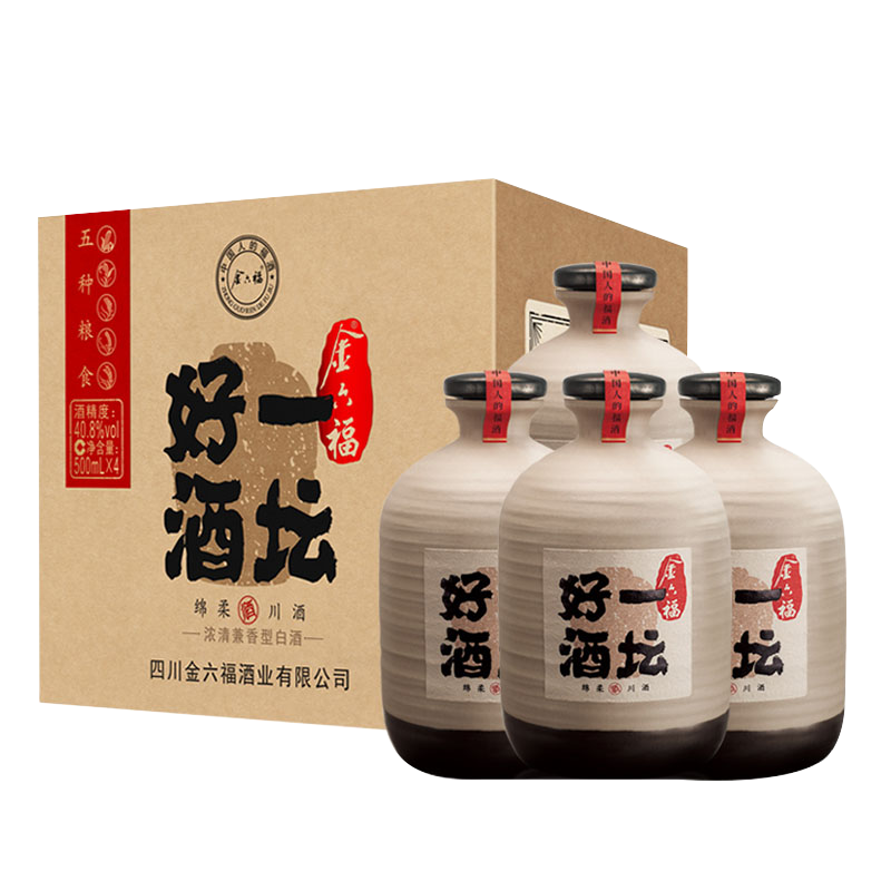 4坛 金六福酒一坛好酒陶坛40.8度兼香型白酒整箱500ml 2017年