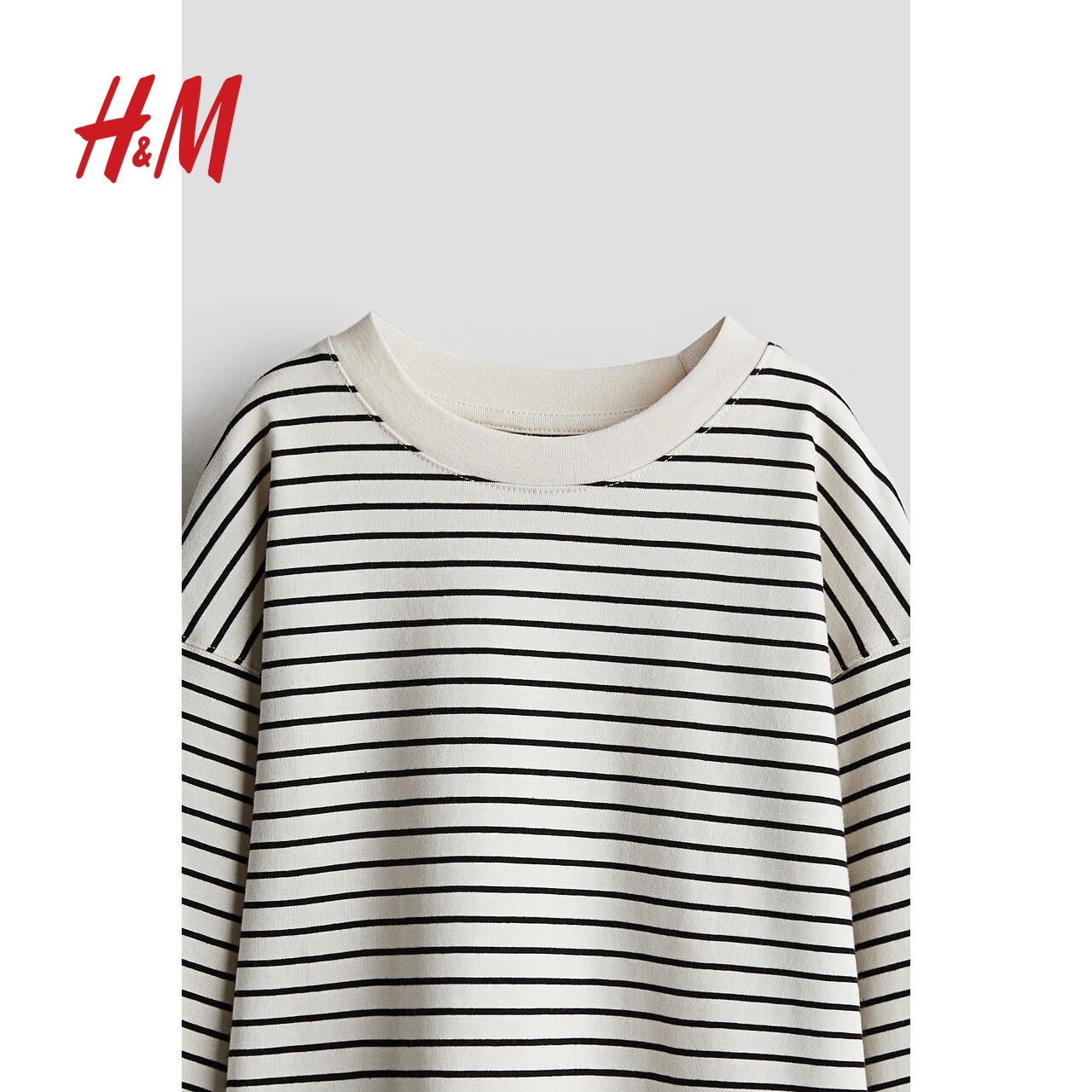 长袖 柔软大廓形圆领薄款 上衣1258783 儿童女童T恤秋季 HM童装