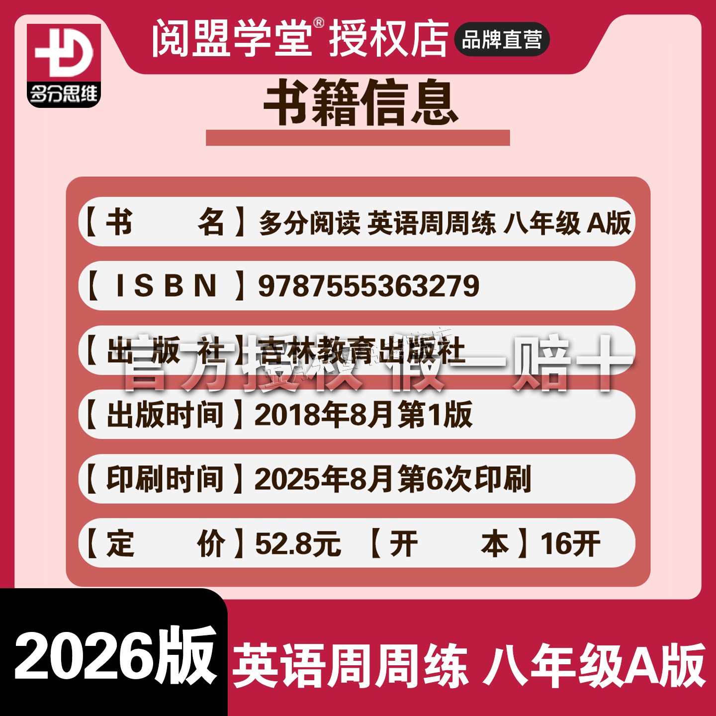 初二8年级A版 广东专用版 上册多分英语多分思维第6次升级精选时文新题速递 多分阅读英语周周练八年级A版 2026新版