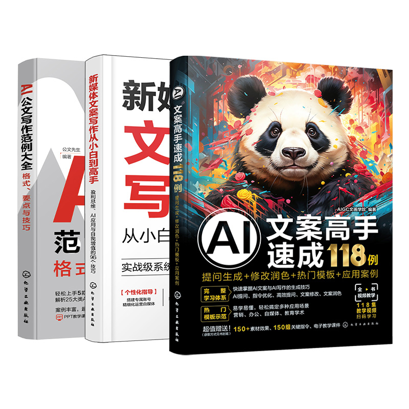 新媒体文案写作从小白到高手 3册 AI文案高手速成118例 新媒体文案写作 提问生成修改润色热门模板 AI公文写作范例大全