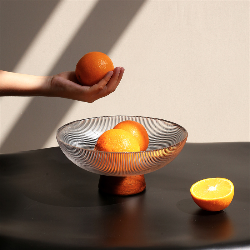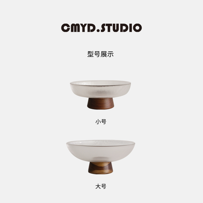 CMYD高级感新中式 高脚玻璃水果盘家用客厅茶几坚果篮中秋收纳摆件