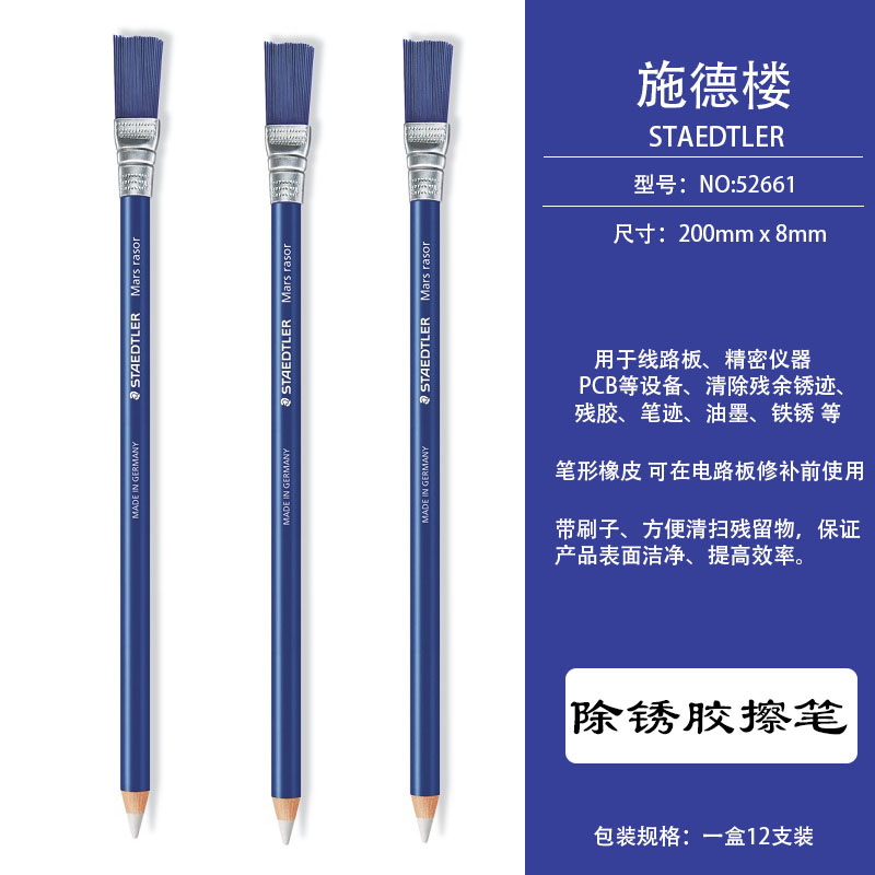 进口除锈清理刷 胶擦笔52661带笔刷橡皮电子厂五金精密仪器线路板PCB去除锈残胶扫把笔砂胶笔