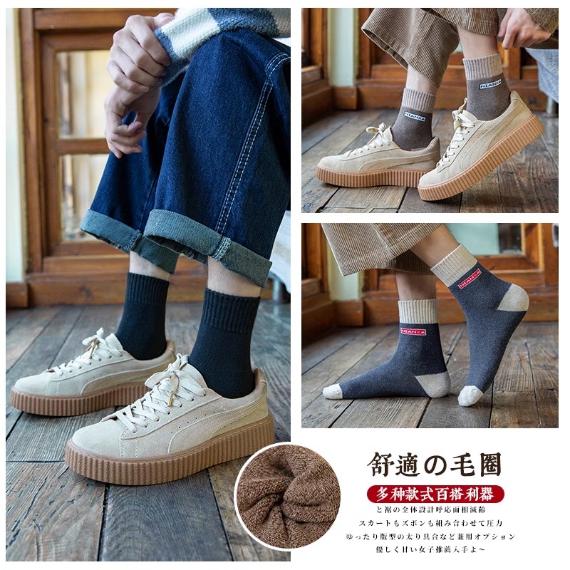 毛巾袜子男中筒长袜冬季 纯棉防臭秋冬加绒加厚保暖ins潮长筒冬天