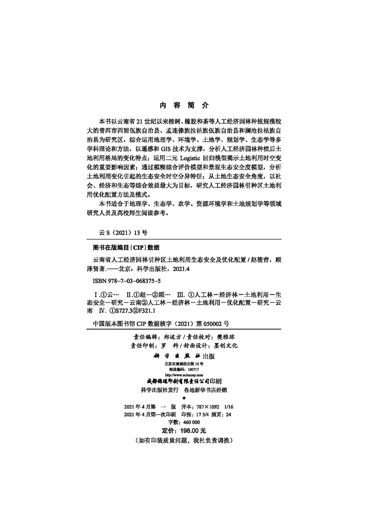 云南省人工经济园林引种区土地利用生态安全及优化配置 顾泽贤 赵筱青