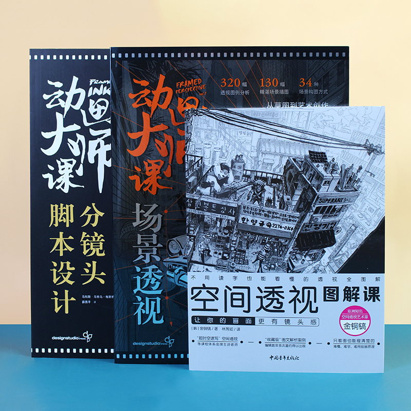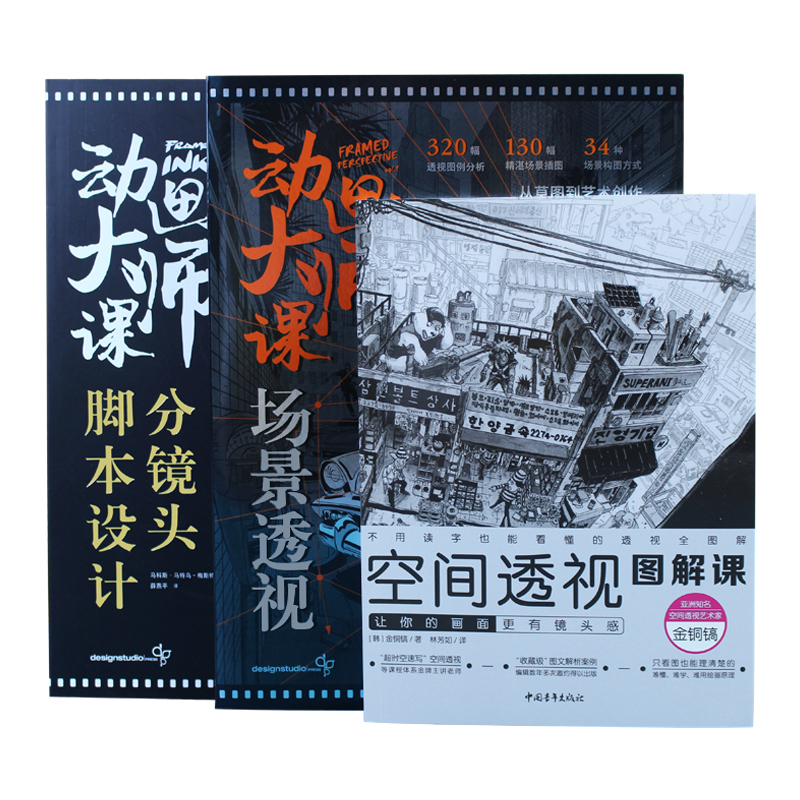 漫画插画影视动画设计镜头语言艺术设计 场景透视3本一套 绘画透视教程画集速写集教程书籍 动画大师课分镜头 空间透视