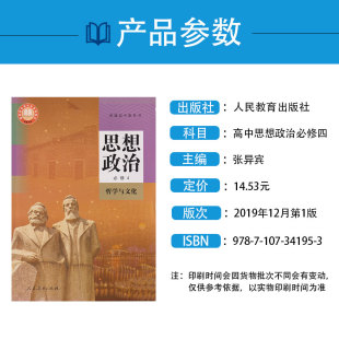 新教材政治必修四4 全新 高中思想政治必修四 正版 社 人民教育出版 高中课本教材教科书 必修4哲学与文化 思想政治 人教版 2025新版