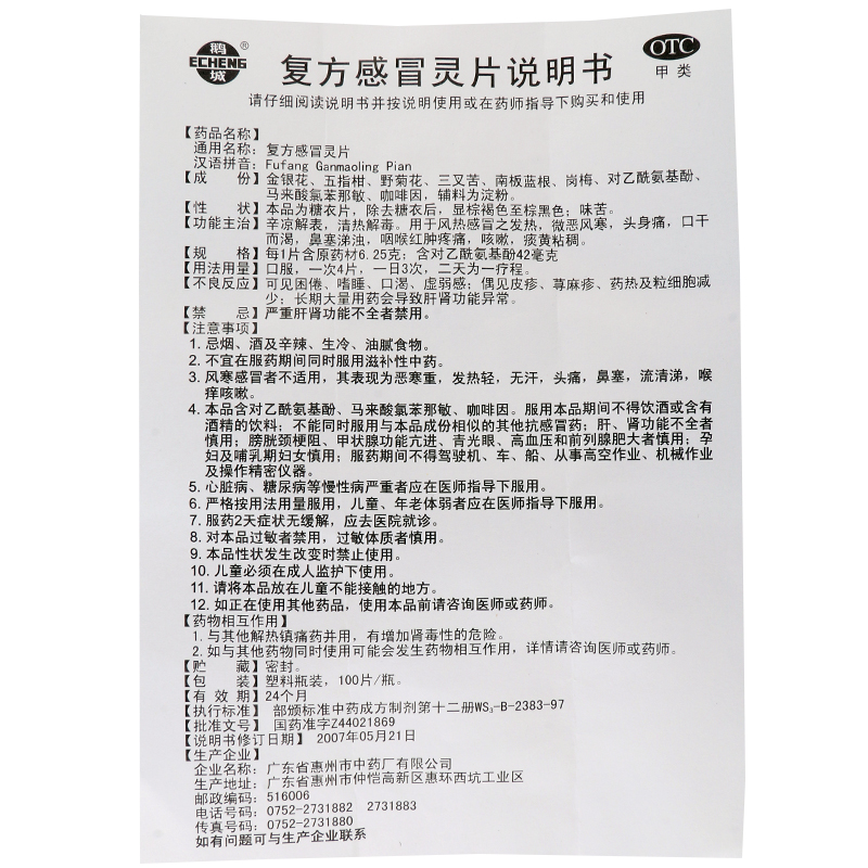 鹅城复方感冒灵片100片辛凉解表清热解毒咽喉肿痛痰黄咳嗽口干渴