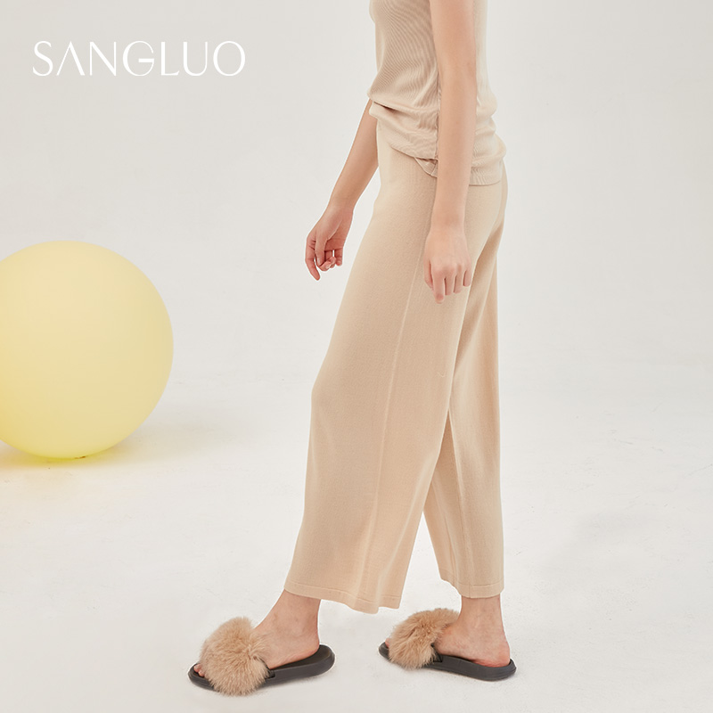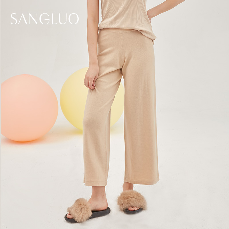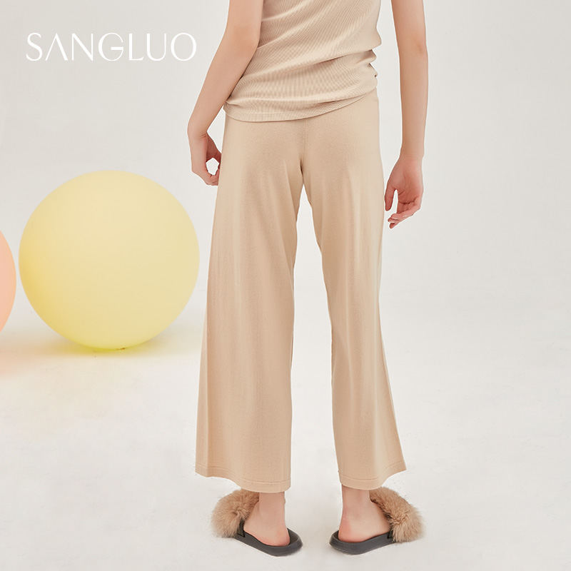 SANGLUO100%纯羊毛保暖家居裤 冬 女士米色宽松可外穿软又暖睡裤