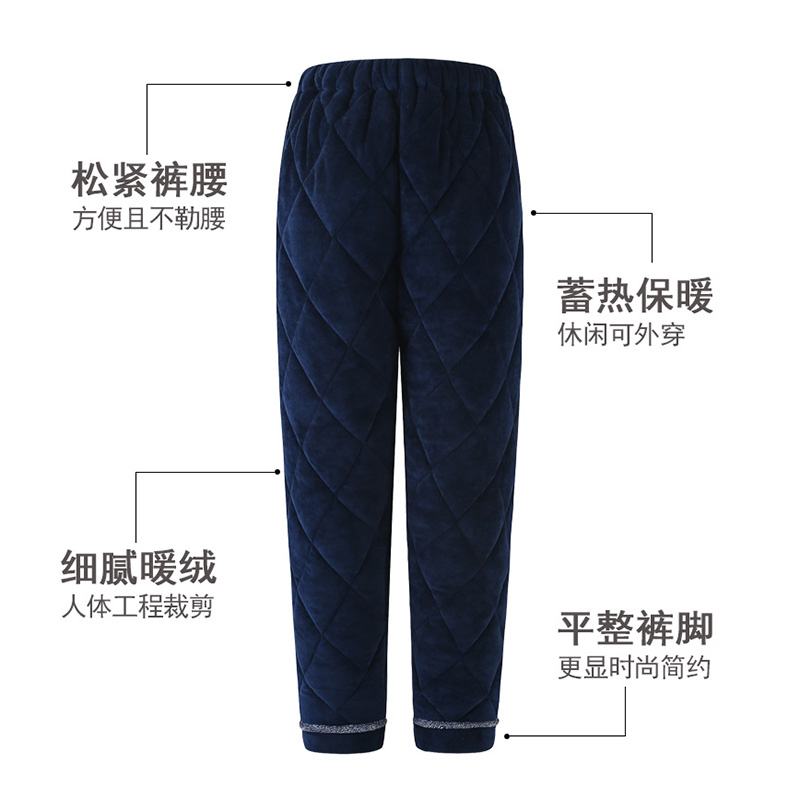 男士 加棉法兰绒睡裤 子家居三层夹棉裤 加厚加绒珊瑚绒裤 外穿 男冬季