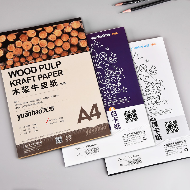 元 浩A4卡纸硬手工牛皮纸黑色白色A3白卡8k手抄报4k厚幼儿园小学生diy材料250g手帐相框儿童成长手册美术绘画