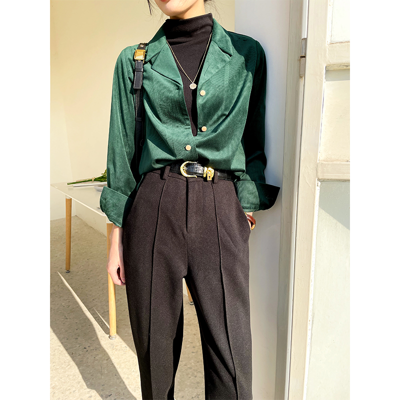 墨绿色叠穿灯芯绒衬衫 复古磨毛内搭叠穿打底衬衣 女2025年秋冬新款