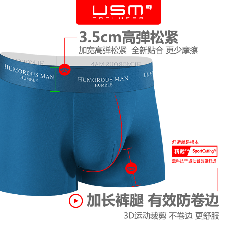 冰丝透气四角短裤 3件 莫代尔大码 平角内裤 男生 蕉内银皮500E男士