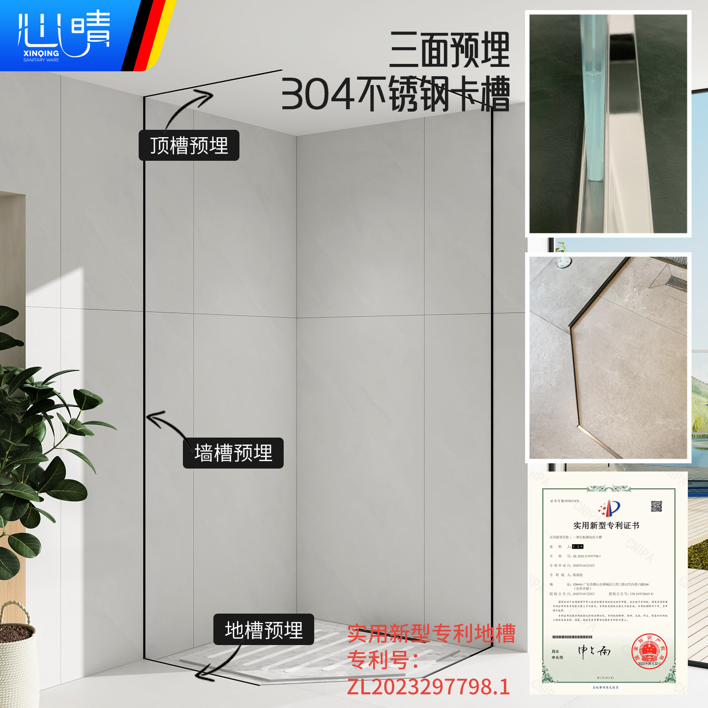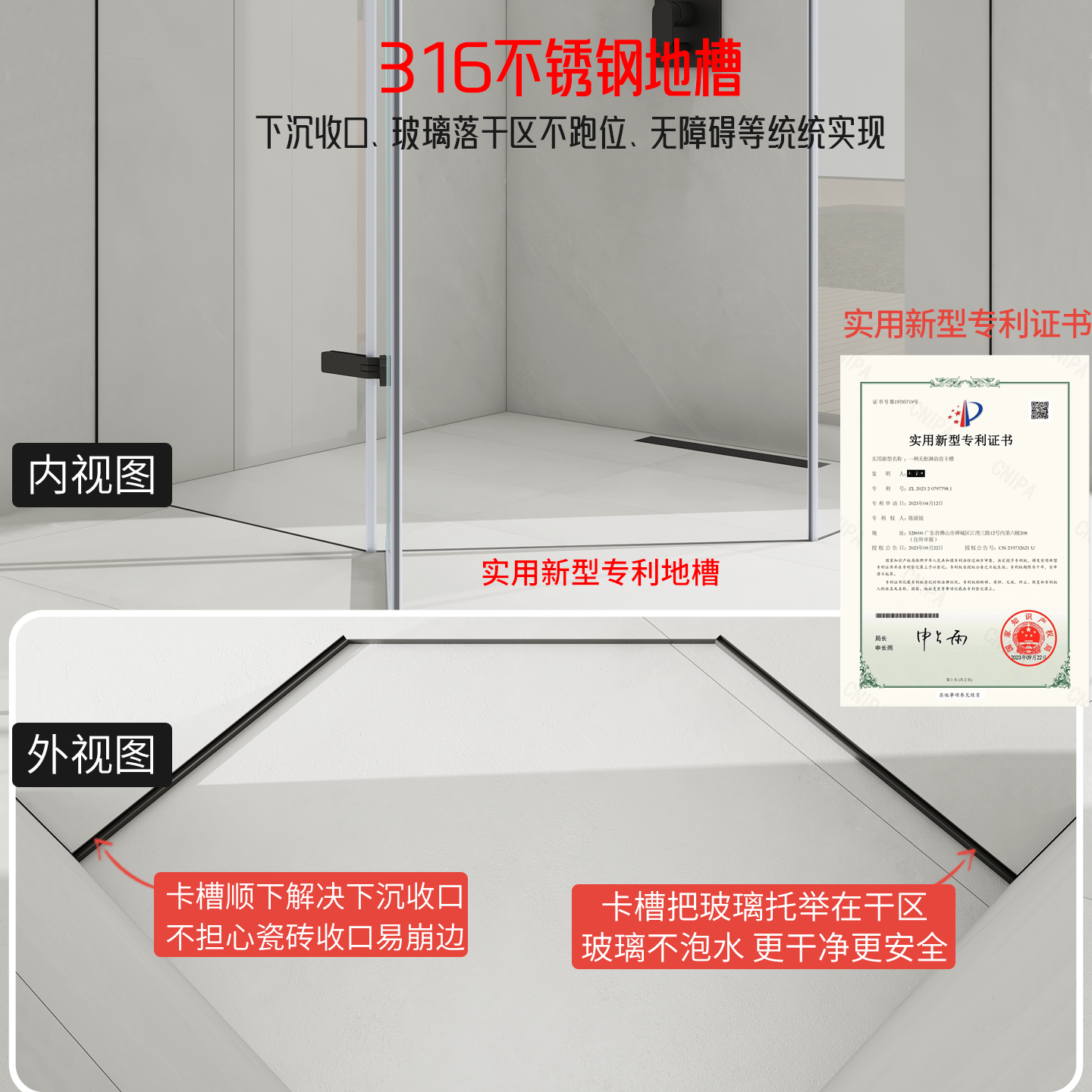 心晴极简干湿分离浴室隔断下沉式 无障碍卫生间钻石型无边框淋浴房