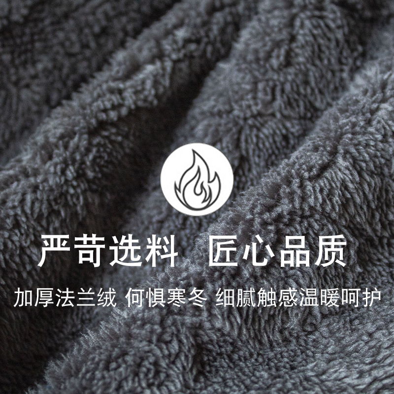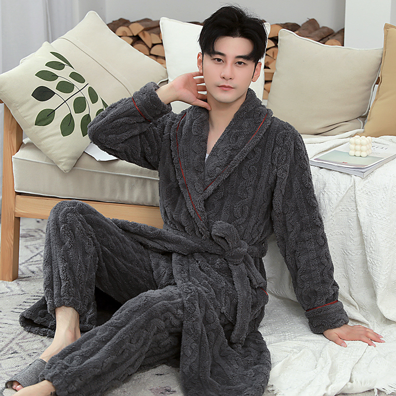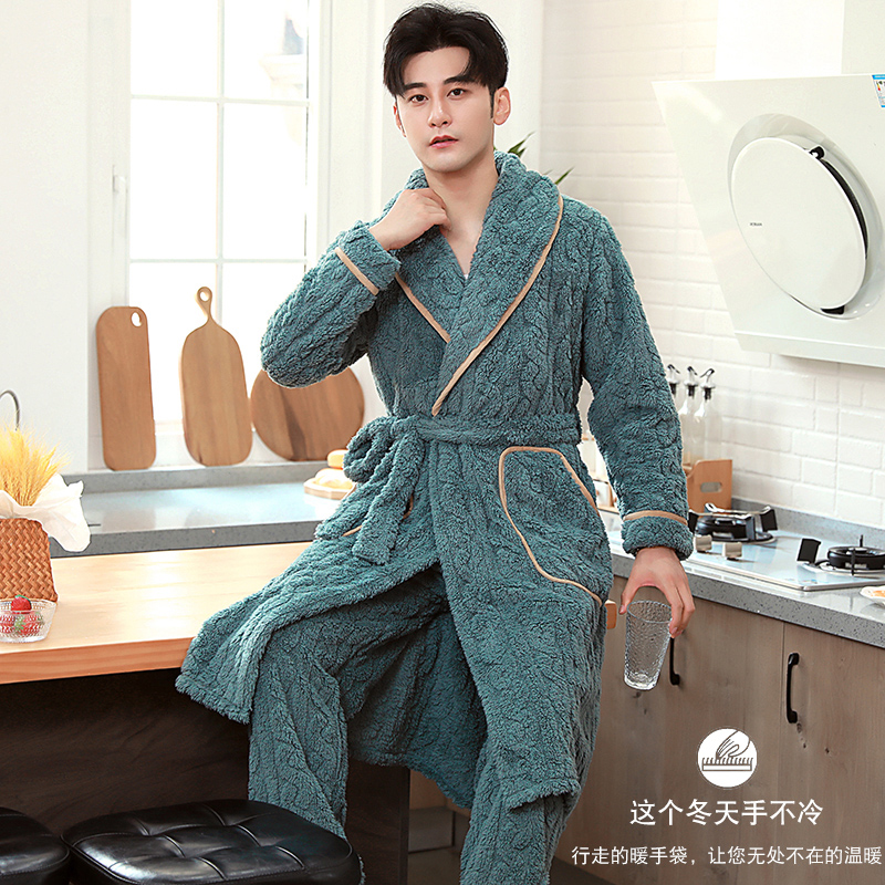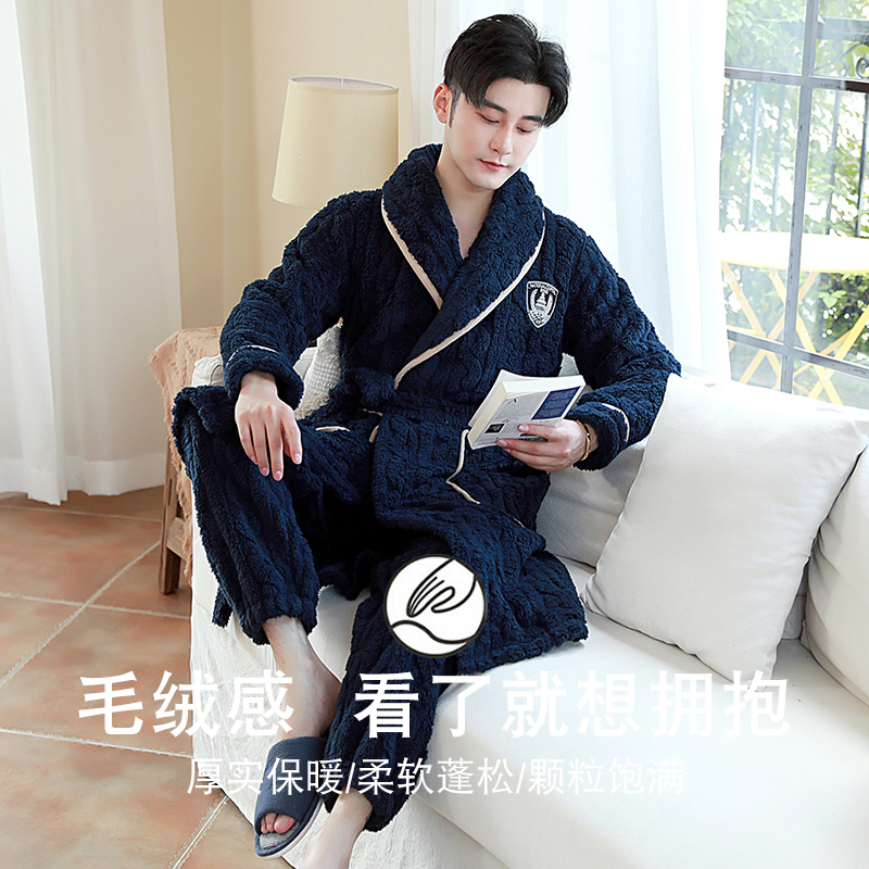睡袍冬天家居服套装 加厚珊瑚绒保暖法兰绒浴袍长款 秋冬季 睡衣男士